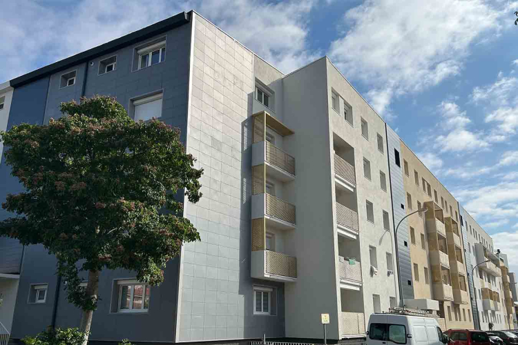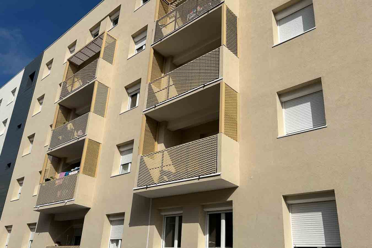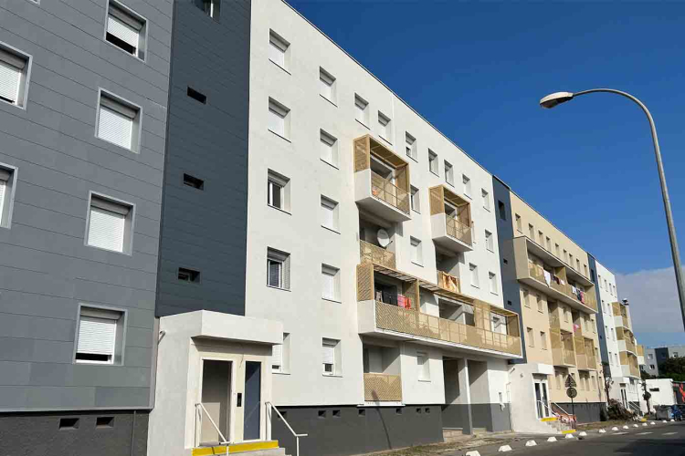 Fourniture et pose de 1476 menuiseries PVC blanc RAL 9016 teinté dans la masse et volets roulants intégrés VERSO manoeuvre par treuil avec tablier alu. Fourniture et pose de 5 menuiseries ALU